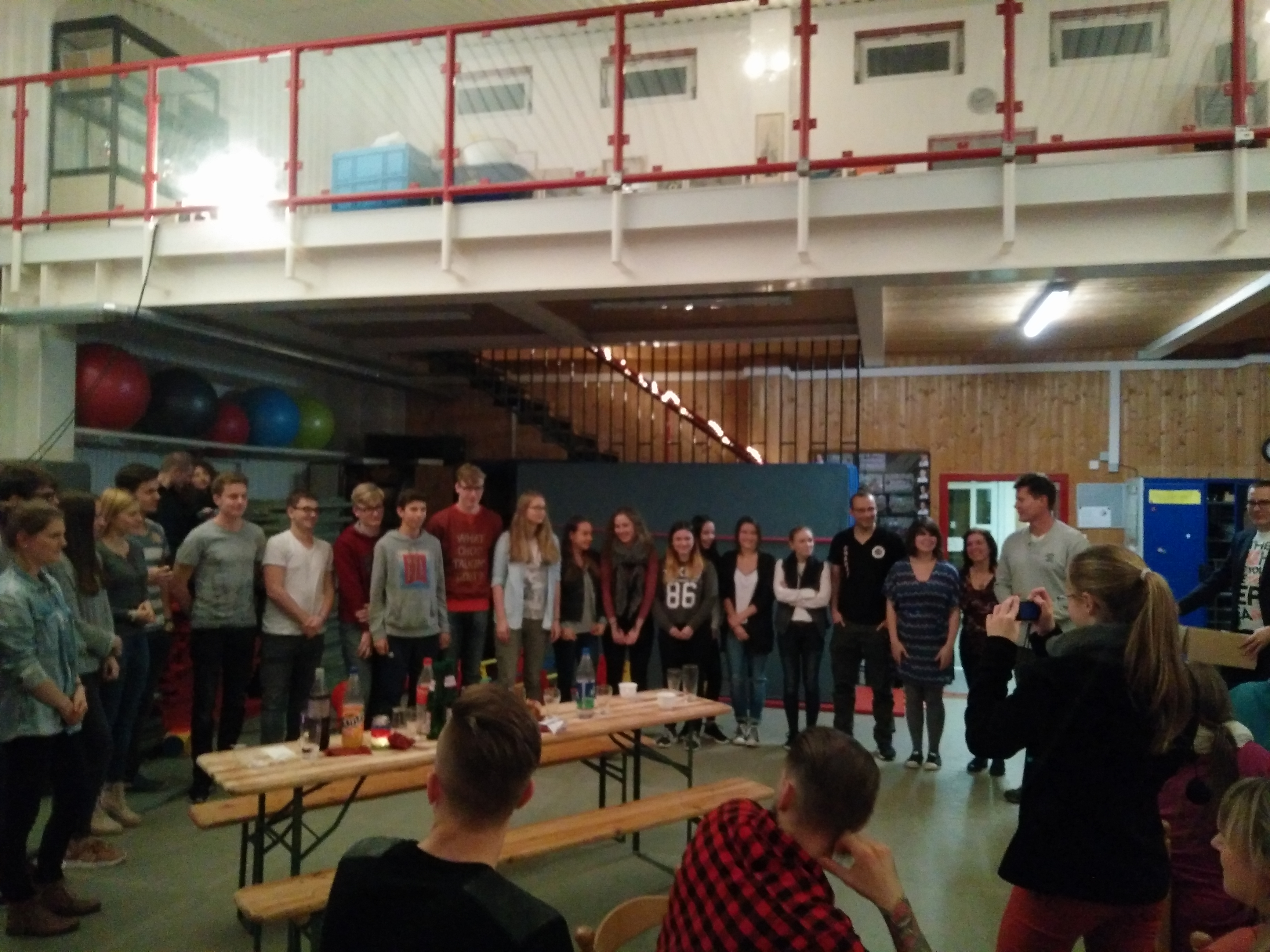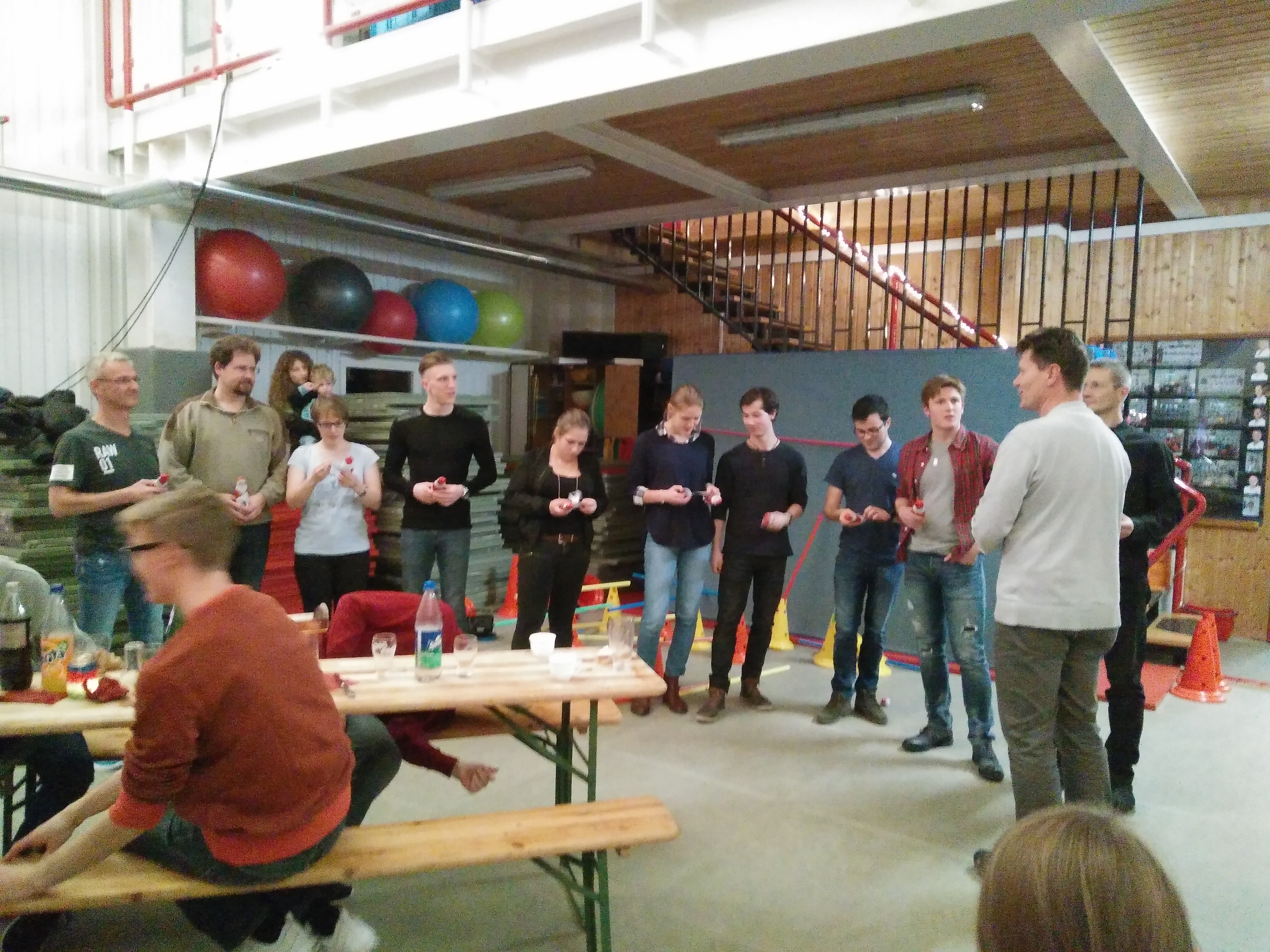 Auch die anschließende Feier der Erwachsenen und Jugendlichen konnte sich wieder zahlreicher Teilnehmer erfreuen. Rund 50 Mitglieder folgten der Einladung, die Adventszeit beim gemütlichen Zusammensein im eigenen Dojo zu feiern. Dort wich zu diesem Zweck die Mattenfläche Tischen, Stühlen und einem Buffet, das die Feiernden noch um eigene Nachspeisen erweiterten. So gab es mal wieder eine Gelegenheit für die Anwesenden, sich außerhalb des Trainings zu unterhalten und auszutauschen.